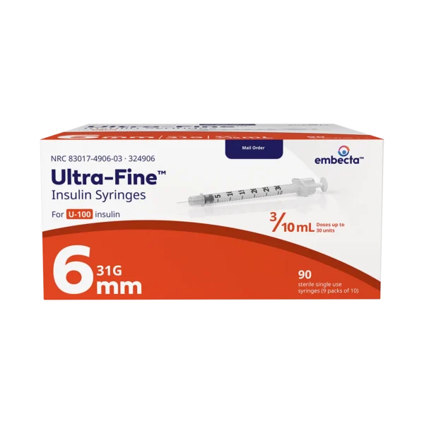 BDBD Embecta Ultra-Fine Insulin Syringe 31G x 6mm, 0.3cc, 90 Count