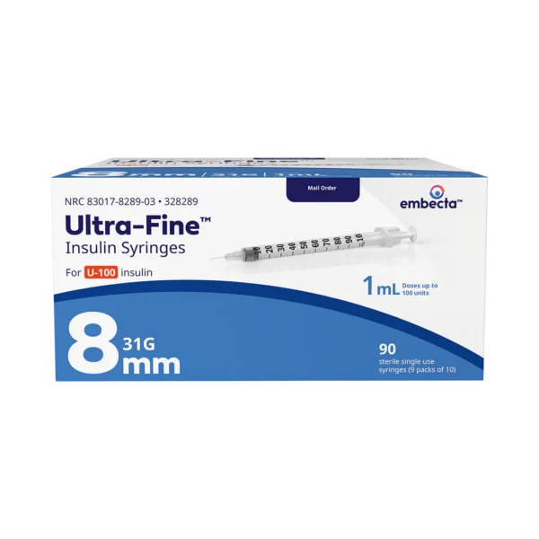 BDBD Embecta Ultra-Fine II Insulin Syringe 31G x 5/16″, 1.0cc, 90 Count