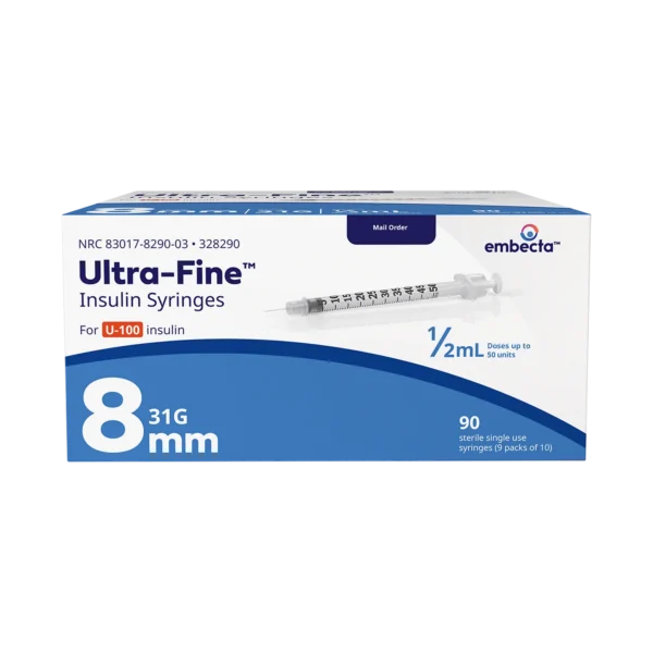 BDBD Embecta Ultra-Fine II Insulin Syringe 31G x 5/16″, 0.5cc, 90 Count