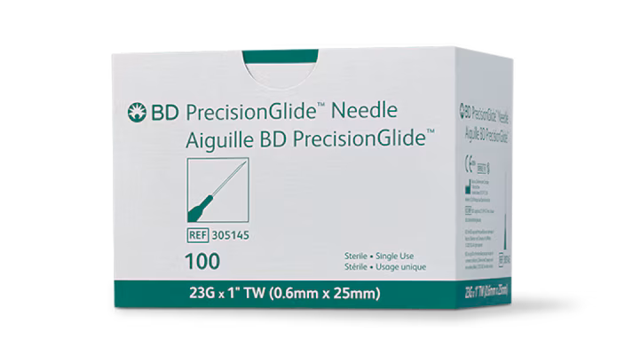 BD PrecisionGlide Hypodermic Needle, Regular Bevel 23″ x 1″